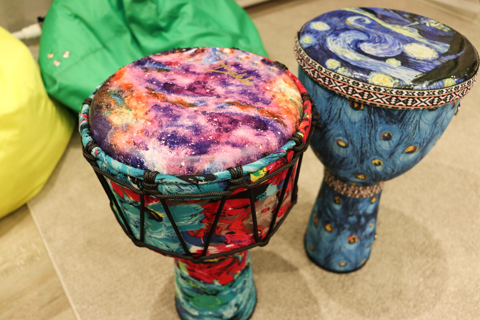 - Познакомятся с ударными инструментами (перкуссия: джембе, коубелы, чаймс, шум моря, гуиро, шейкеры и другие), научатся играть и извлекать звуки.